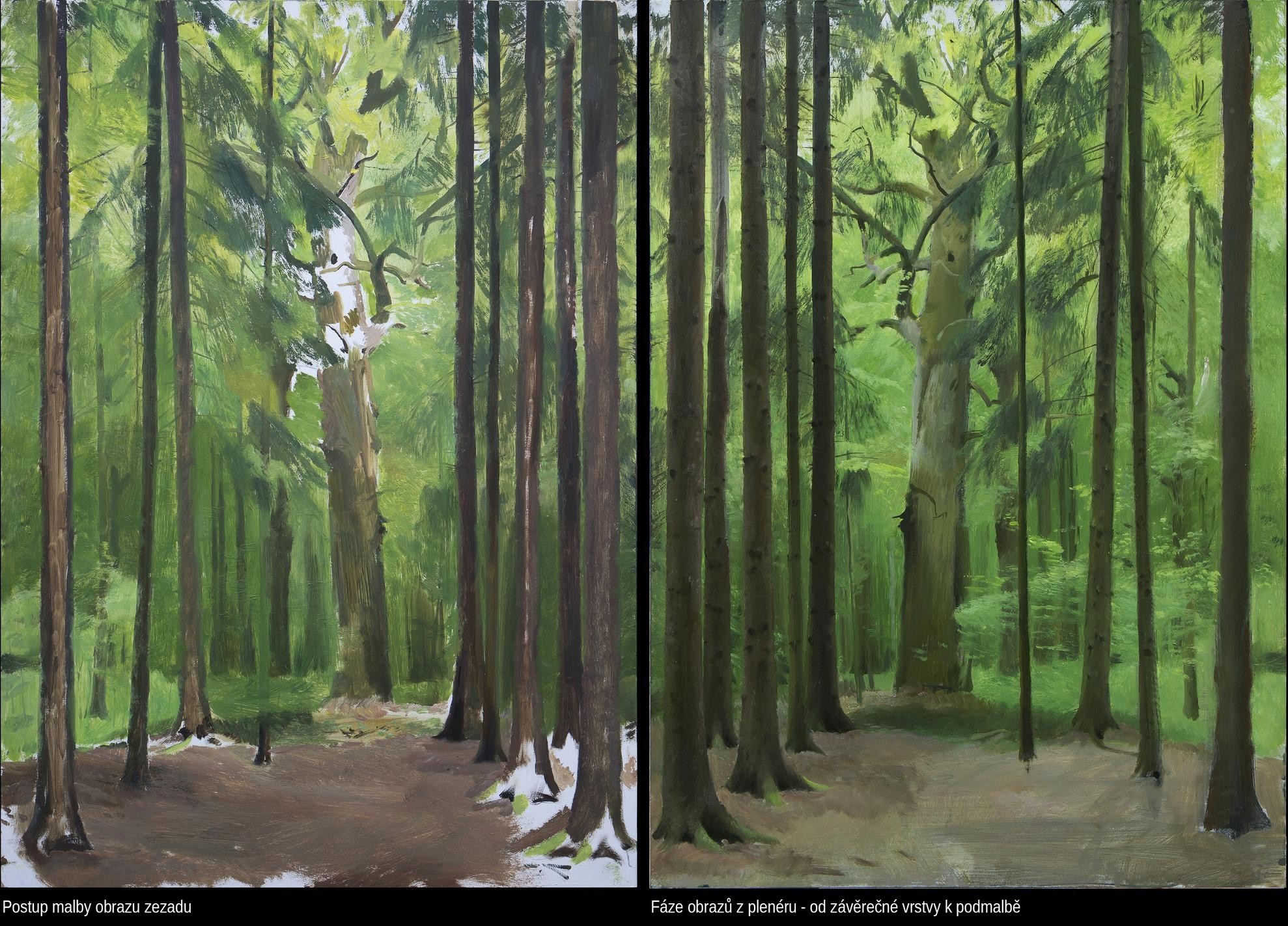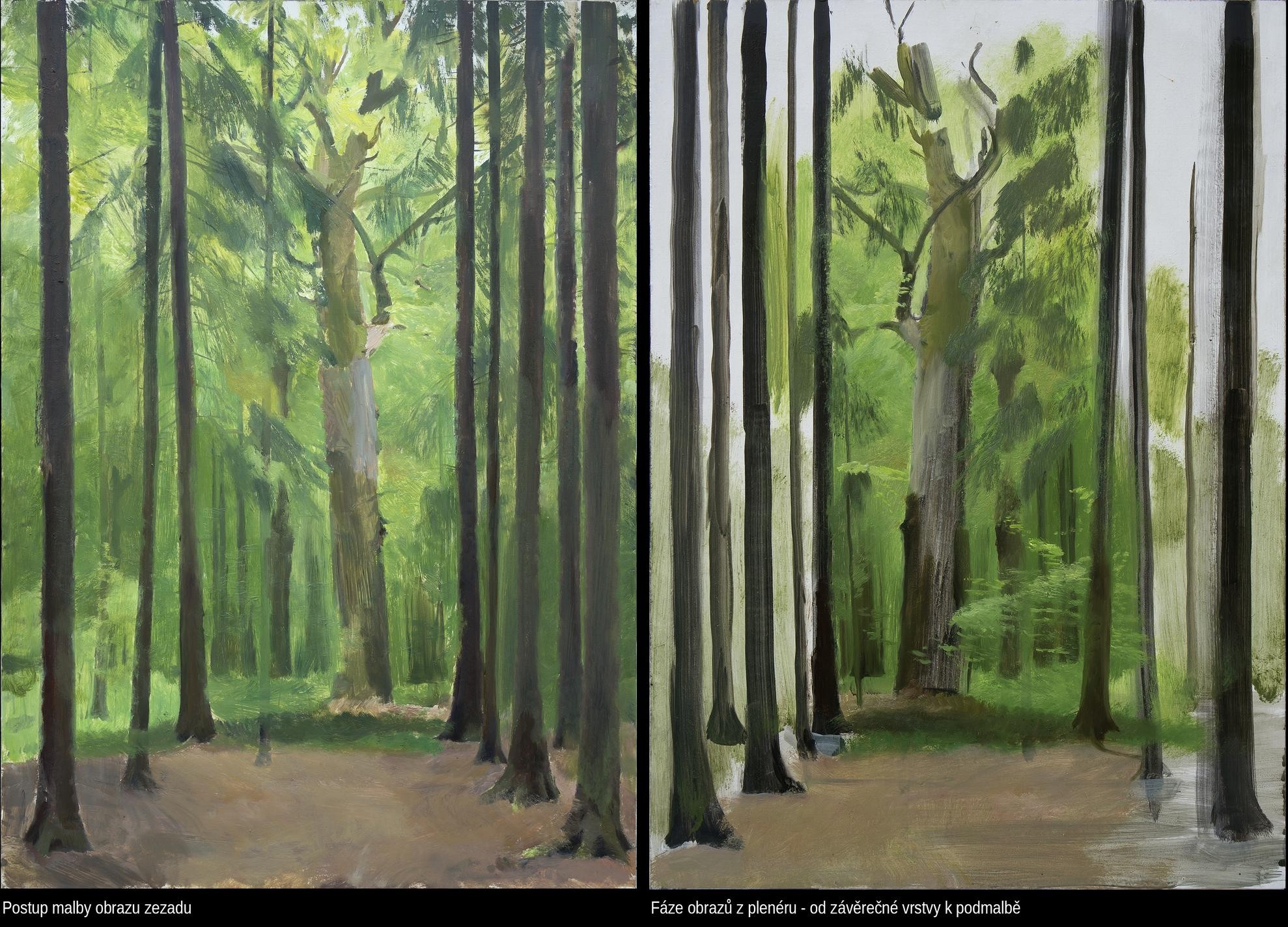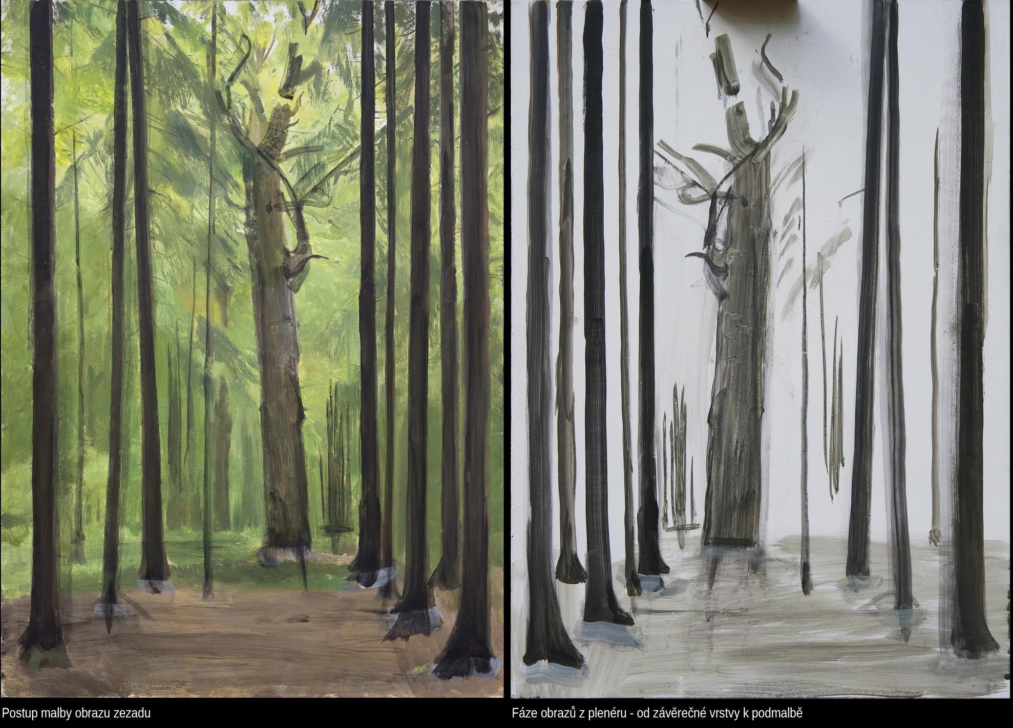 Namaloval jsem obrazy, ve kterých je vrstva s hlavním sdělením, emotivní scénou, překryta znovu klidnou vrstvou pozadí, a nachází se tedy uvnitř obrazu. Krajina většinou slouží jako pozadí pro příběh, místo, na němž se něco odehrává. I samostatná krajina vytváří prostor pro další představy. Celkový obraz si člověk nakonec vždy vytváří v hlavě. Zde však obraz skutečně něco skrývá. Tím, že něco zakryjeme se toho nezbavíme, ale může to časem vyplout na povrch. Je jisté, že obraz, který je několikrát přemalovaný, není stejný, jako obraz, který má jen jeden motiv v jedné vrstvě. Obraz, který má v sobě zamalovanou děsivou zprávu nebo kletbu, je jiný než obraz s pozitivní, erotickou, nebo žádnou zprávou.