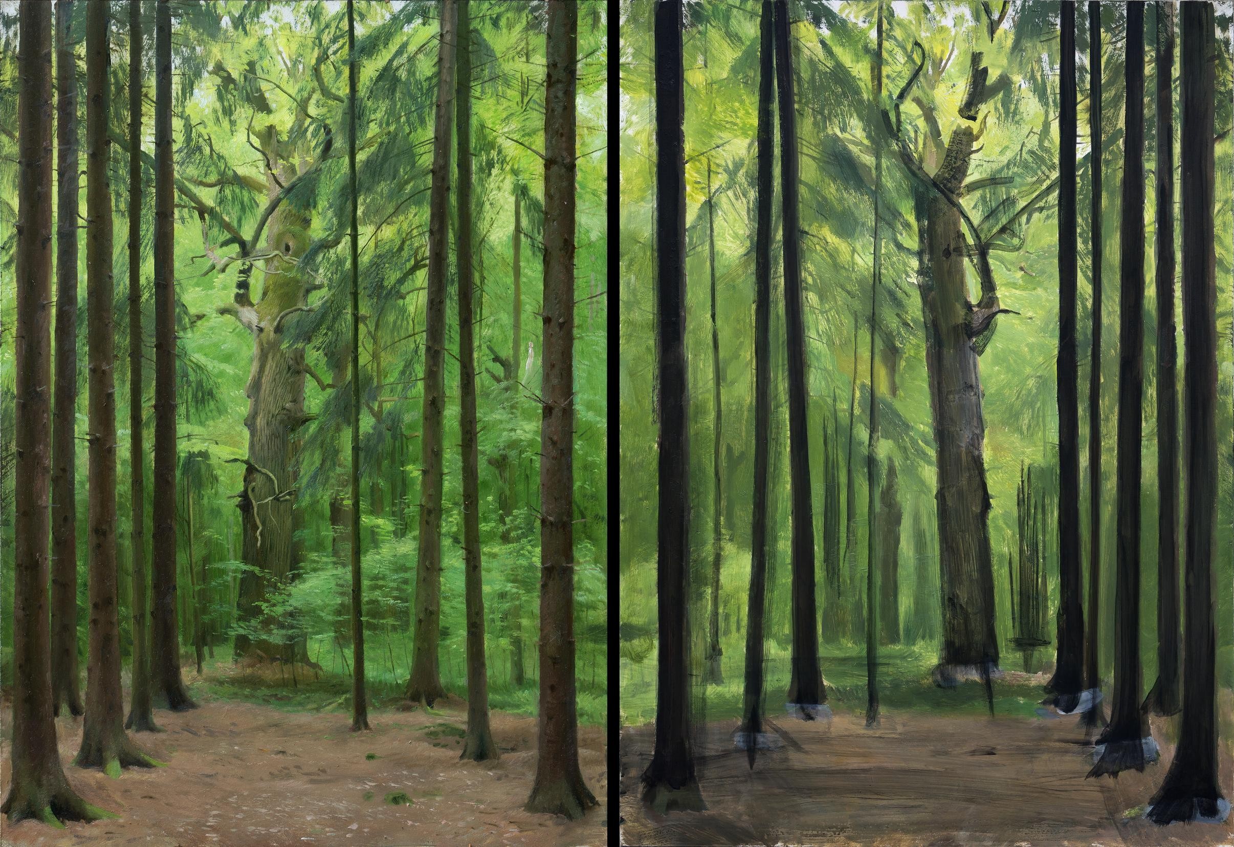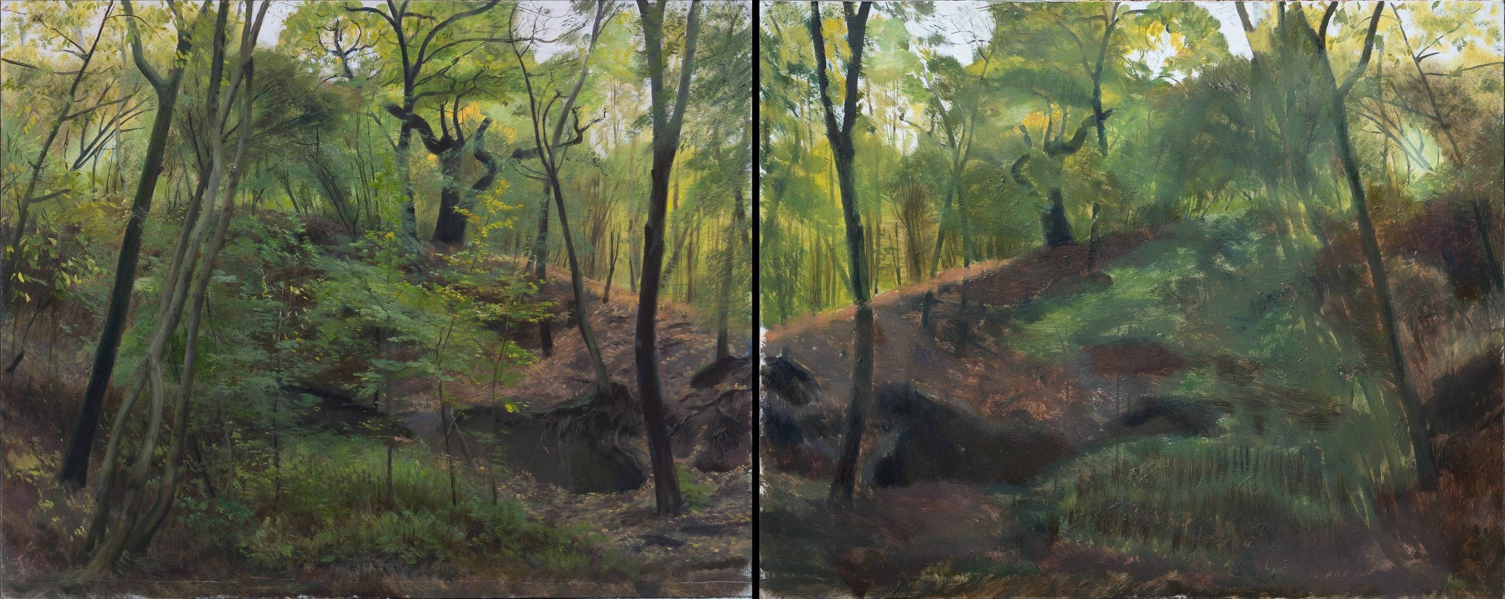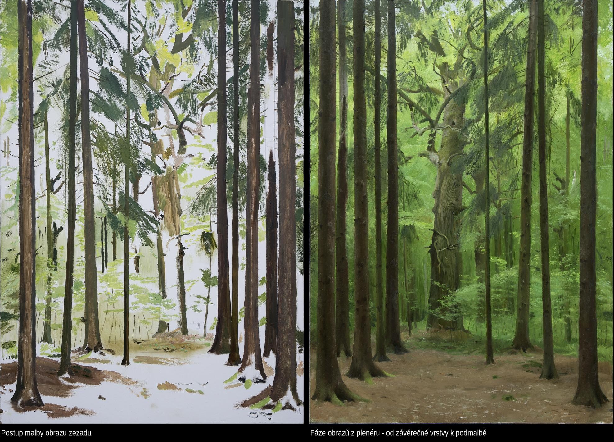Namaloval jsem obrazy, ve kterých je vrstva s hlavním sdělením, emotivní scénou, překryta znovu klidnou vrstvou pozadí, a nachází se tedy uvnitř obrazu. Krajina většinou slouží jako pozadí pro příběh, místo, na němž se něco odehrává. I samostatná krajina vytváří prostor pro další představy. Celkový obraz si člověk nakonec vždy vytváří v hlavě. Zde však obraz skutečně něco skrývá. Tím, že něco zakryjeme se toho nezbavíme, ale může to časem vyplout na povrch. Je jisté, že obraz, který je několikrát přemalovaný, není stejný, jako obraz, který má jen jeden motiv v jedné vrstvě. Obraz, který má v sobě zamalovanou děsivou zprávu nebo kletbu, je jiný než obraz s pozitivní, erotickou, nebo žádnou zprávou.