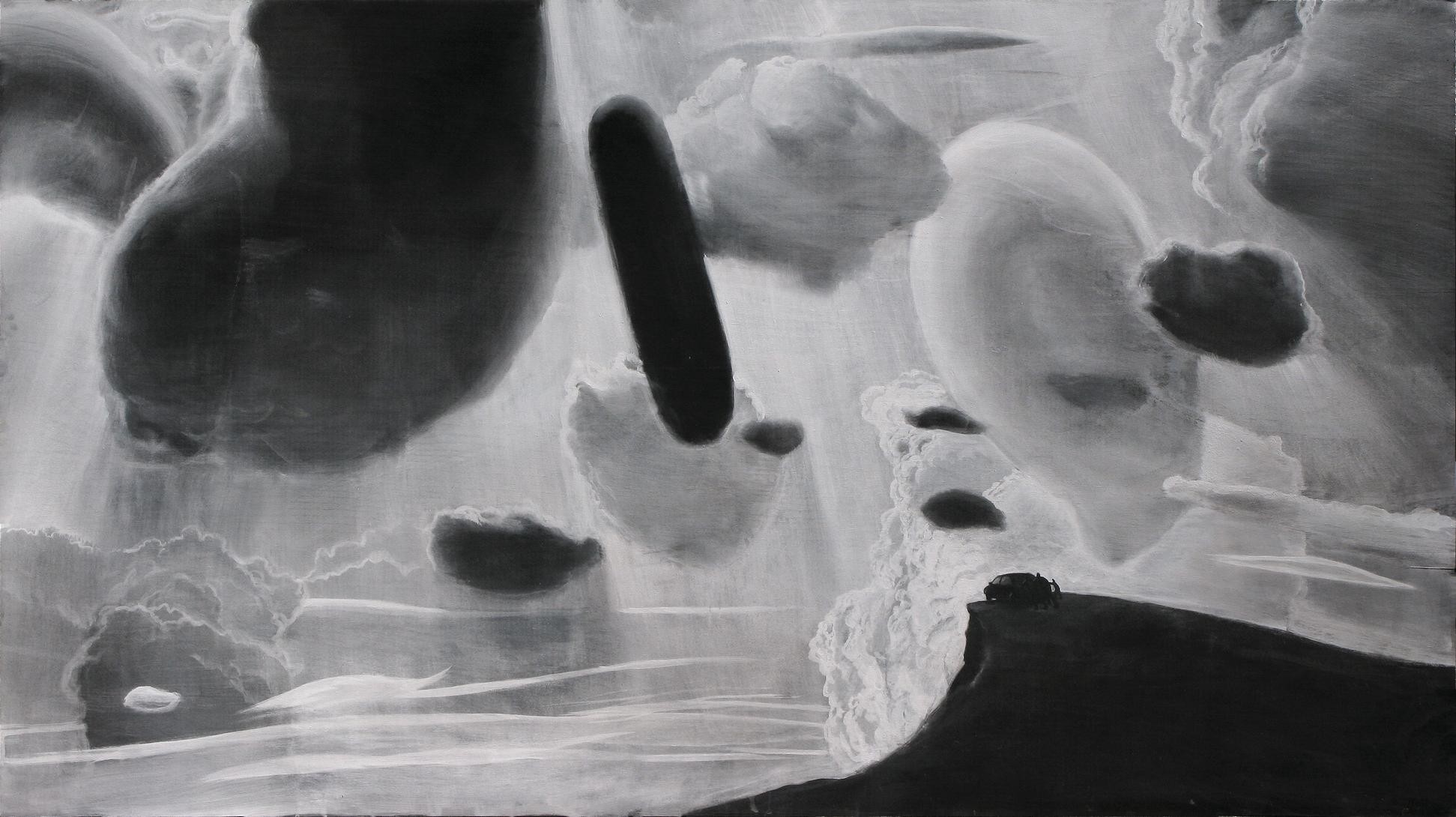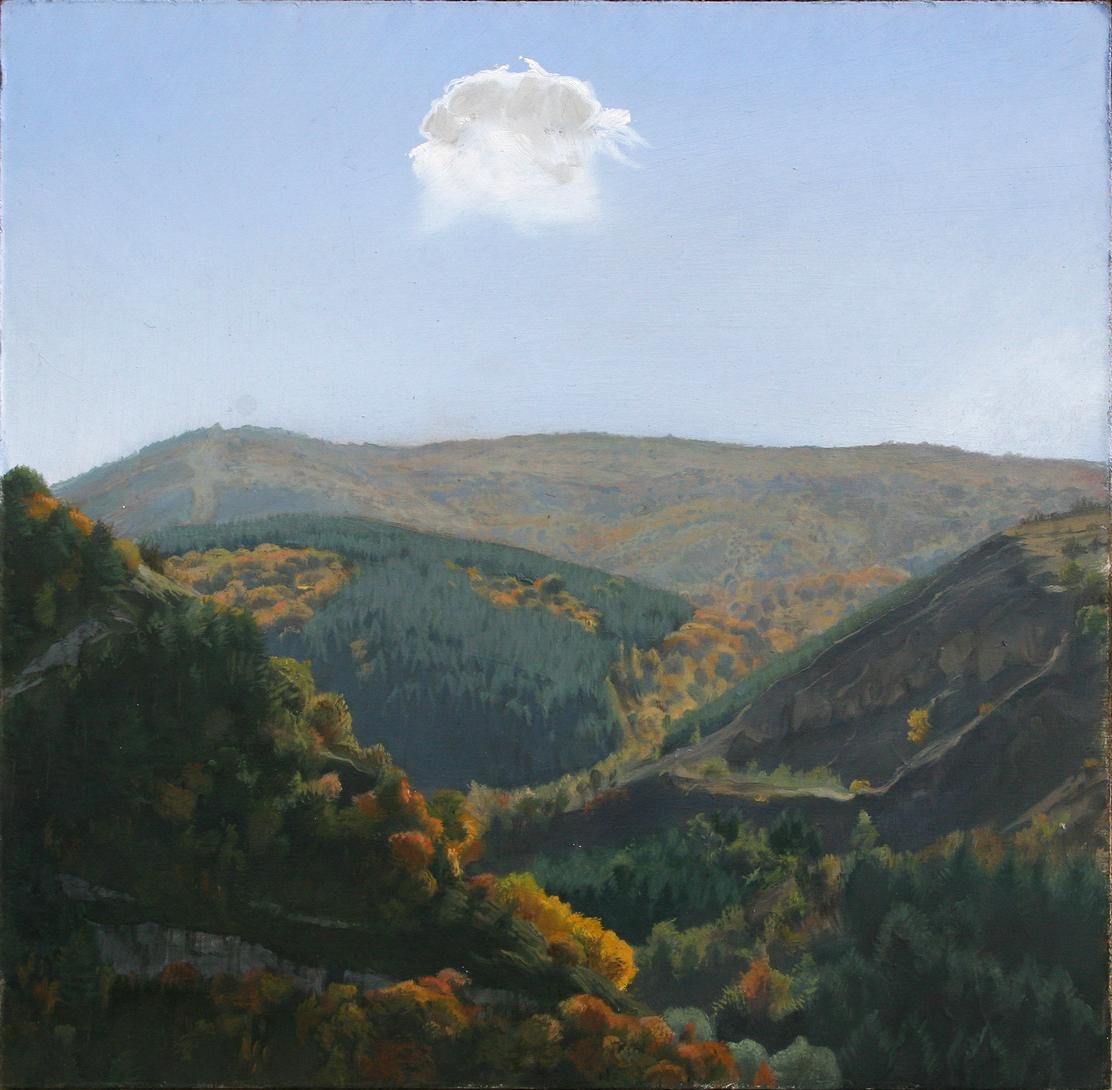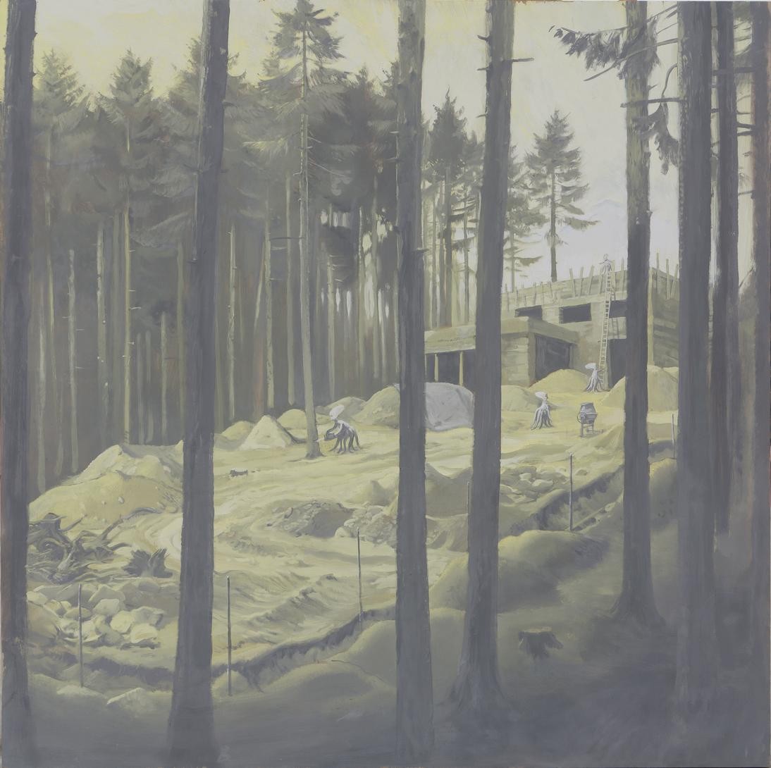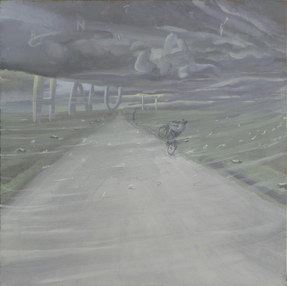 První obrazy jsou malovány čistým práškem TiO2 a na pozdějších obrazech jsem zkoušel průmyslové barvy, které mezitím vyvíjela firma Rokospol.
